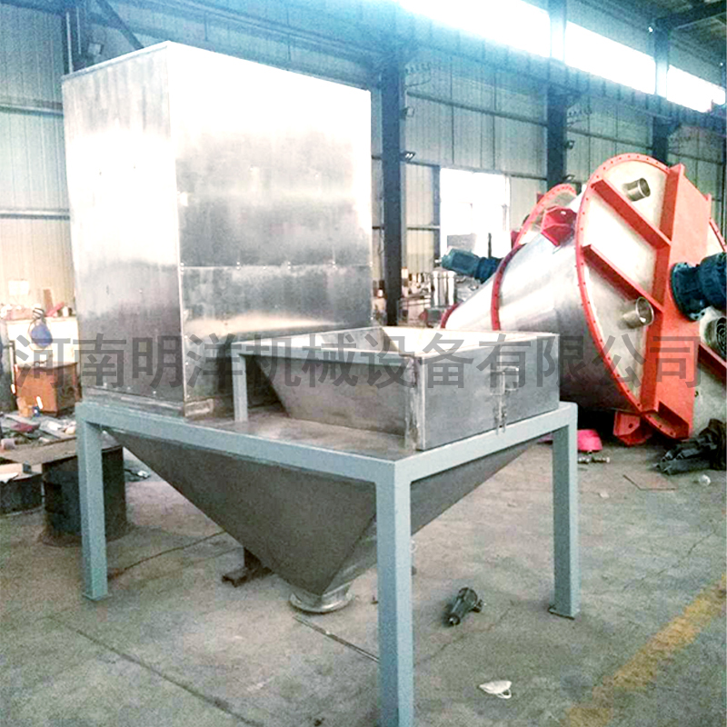 上料氣力輸送、關(guān)風(fēng)機(jī)、稱重料倉(cāng)、臥式螺帶混合機(jī)、緩存?zhèn)}、包裝設(shè)備等。
